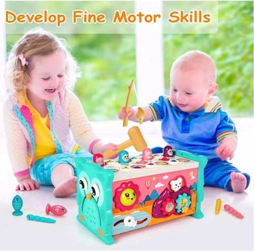 - This toy is completely safe for children. With 4 activities in one toy, it helps children develop hand-eye coordination, fine motor skills, muscle control and color recognition.