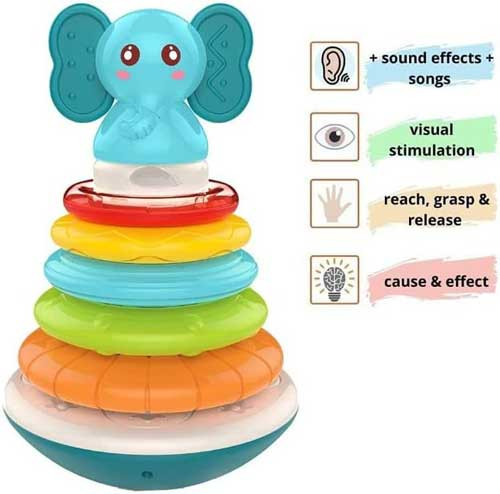 ***Baybee Rainbow Electronic Musical Stacking Ring Toys for Babies with 5 Rings
