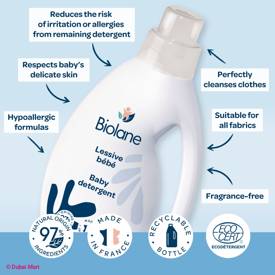 • Reduces the risk of irritation caused by detergent residue on laundry