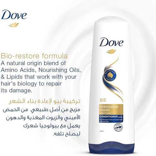 - New Dove Intensive Repair Hair Care Conditioner deeply nourishes hair and helps restore 100% dry and damaged hair.