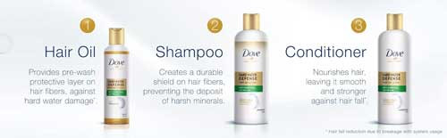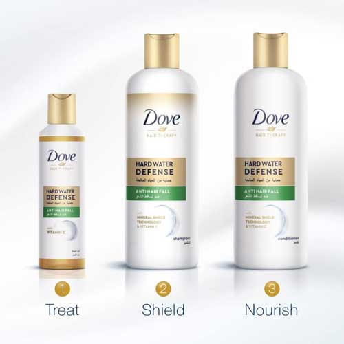 - ডোভ হেয়ার থেরাপি কন্ডিশনার ক্ষতিগ্রস্ত চুলকে রক্ষা করে। ওয়াটার ডিফেন্স ১ বার ব্যবহারে ৯৮ % পর্যন্ত চুল পড়া প্রতিরোধ করে।