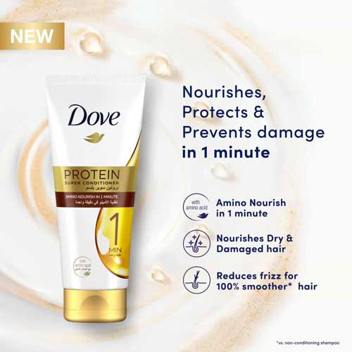 - Dove Protein Super Conditioner makes hair beautiful and smooth in just one minute.