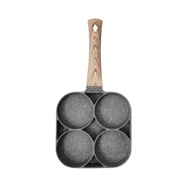 ***ECVV 4 Hole Omelet Pan for Burger Eggs Ham Pancake Maker Wooden Handle Frying Pot Non-Stick Cooking Breakfast
