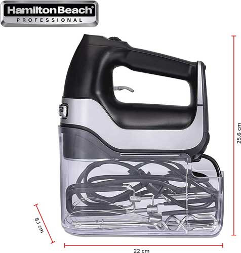 ****Hamilton Beach Professional 7-Speed Electric Hand Mixer with Digital Display, Quiet DC Motor, Beater, Whisk, Dough Hook, Snap-On Storage Case, 200 Watts, Black, 62655-SAU, 5-Year Limited Warranty