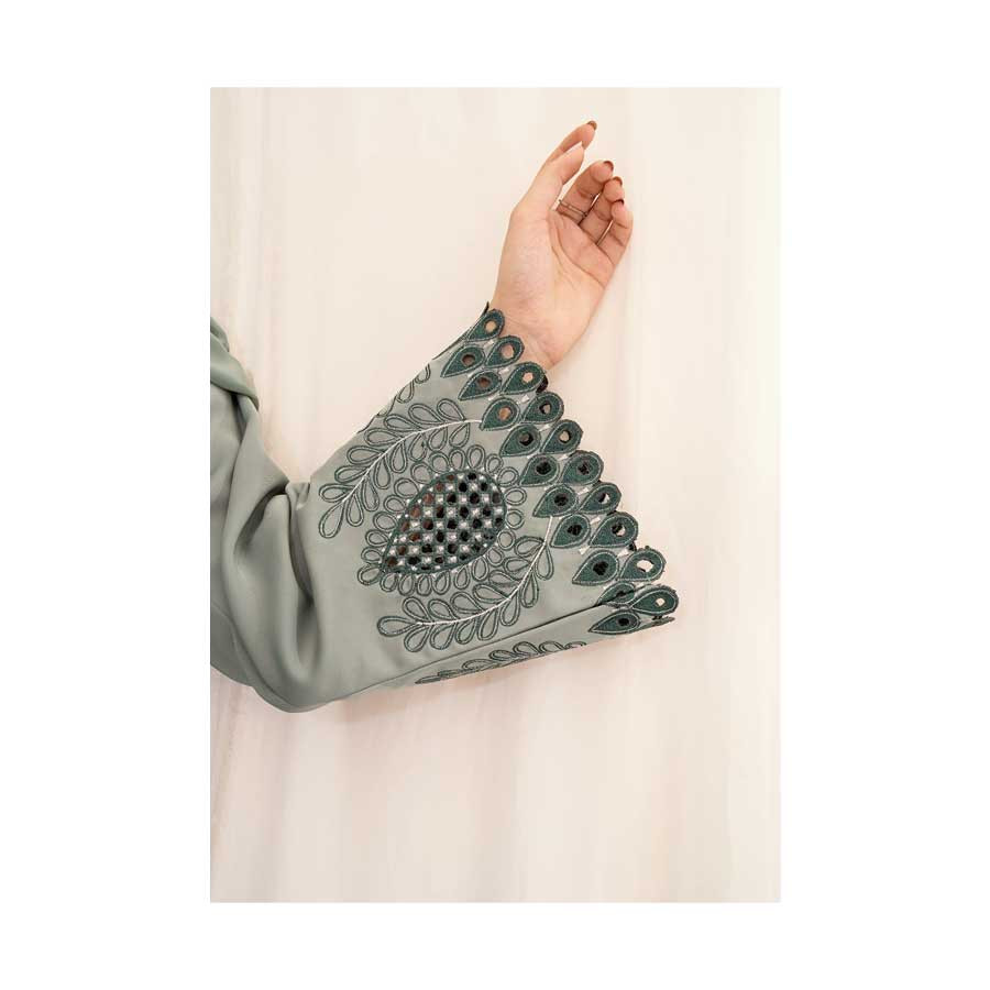 - This gorgeous burqa has a beautiful cutwork design on the sleeves.