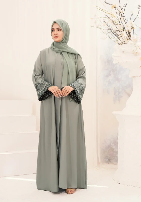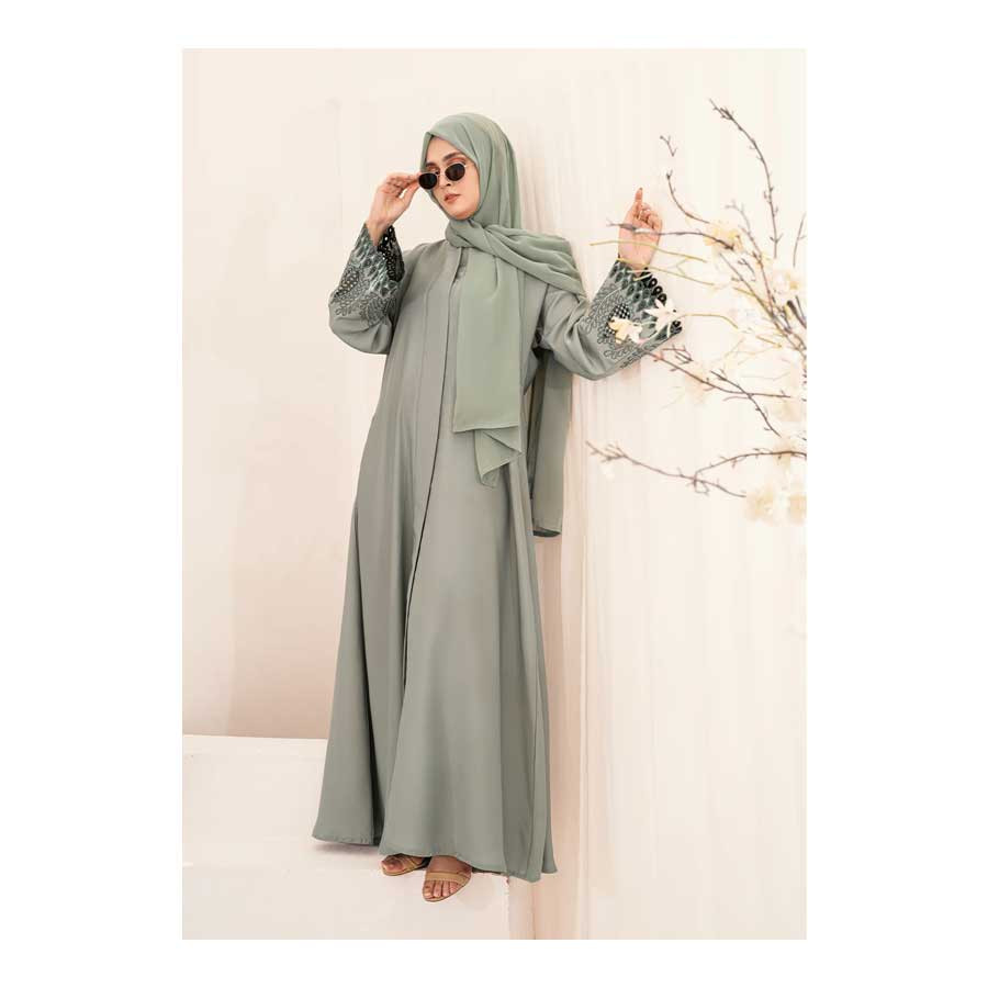 *** Hareer Embroidered Abaya - Light Green
