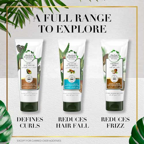 - হার্বাল এসেন্সের কোকোনাট মিল্ক লিভ-ইন কন্ডিশনারে নারকেলের দুধ এবং অ্যান্টিঅক্সিডেন্ট থাকায় চুলকে ময়েশ্চারাইজড এবং মসৃণ করে। এছাড়া ৭২ ঘন্টা পর্যন্ত চুলের কোঁকড়া ভাব দূর করতে সাহায্য করে।
