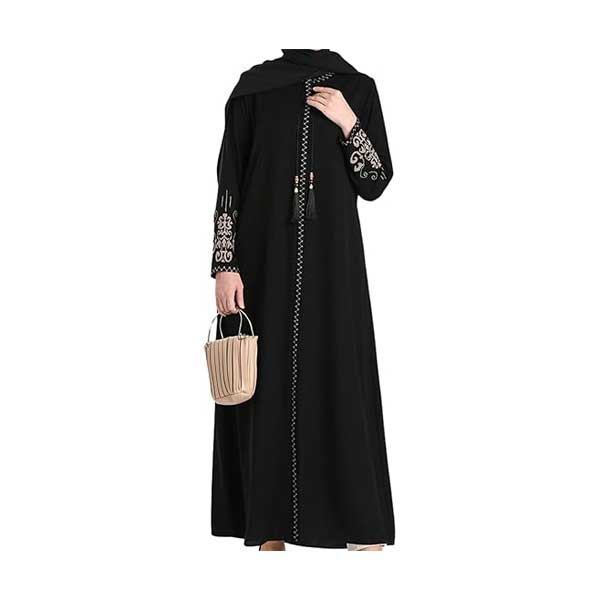 - এই মার্জিত কালো আবায়া প্রেমিয়াম দুবাই চেরি কাপড় থেকে তৈরি, ঐতিহ্য এবং আধুনিক নকশার একটি নিখুঁত মিশ্রণ। হাতায় সূক্ষ্ম ফুলের নমুনা সমন্বিত এবং লেস লাগানো রয়েছে।