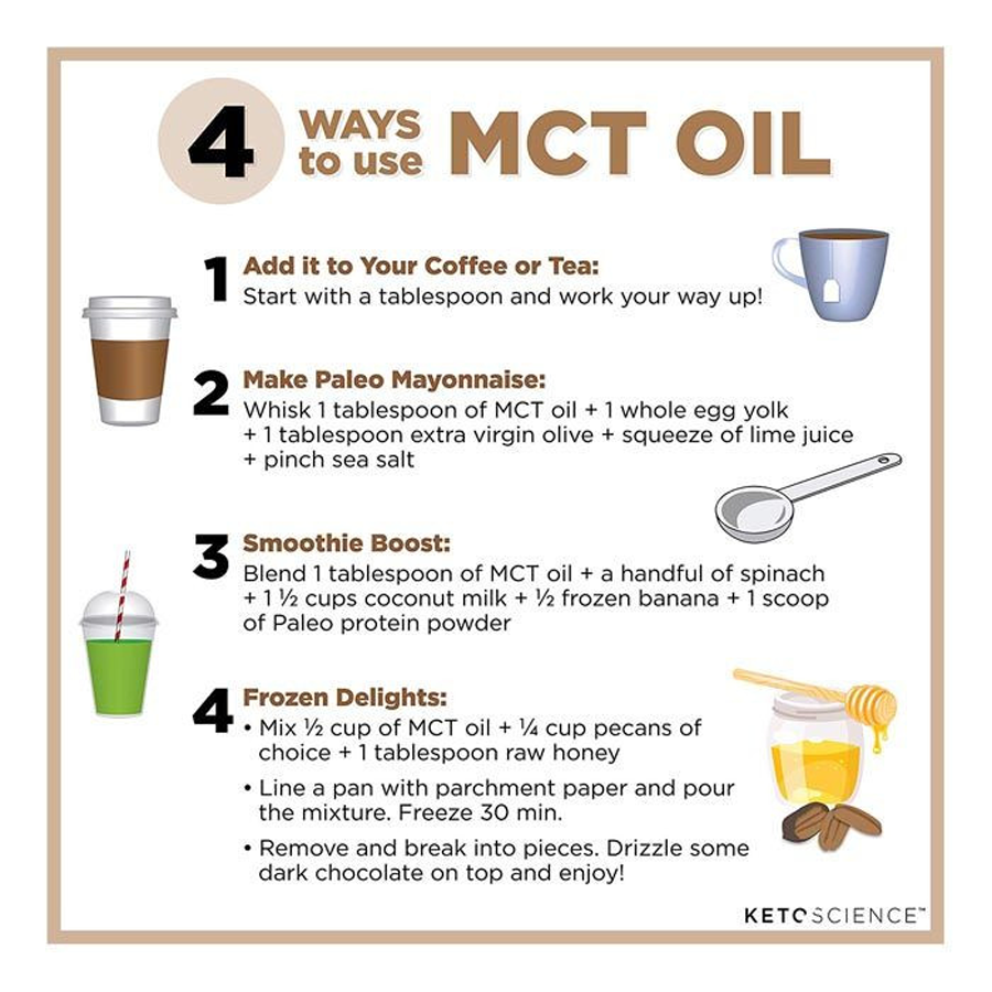 - Pure MCT Oil 100% Sourced From Coconuts