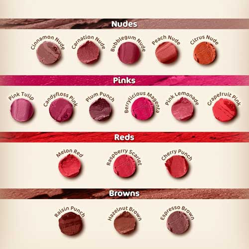 - Mamaearth ময়েশ্চার ম্যাট লংস্টে লিপস্টিক পুষ্টিকর যত্নের সাথে দীর্ঘস্থায়ী পরিধানকে একত্রিত করে। এটি প্রাণবন্ত রঙ সরবরাহ করে যা সারাদিন স্থায়ী হয়, অ্যাভোকাডো তেল এবং ভিটামিন ই সমৃদ্ধ পিগমেন্টেশন এবং ময়শ্চারাইজিং ফর্মুলা দিয়ে তৈরি। এই লিপস্টিক একটি আরামদায়ক ম্যাট ফিনিশ লুক প্রদান করে এবং ক্ষতিকারক রাসায়নিক থেকে মুক্ত, এটি সব ধরনের ত্বকের জন্য নিরাপদ।