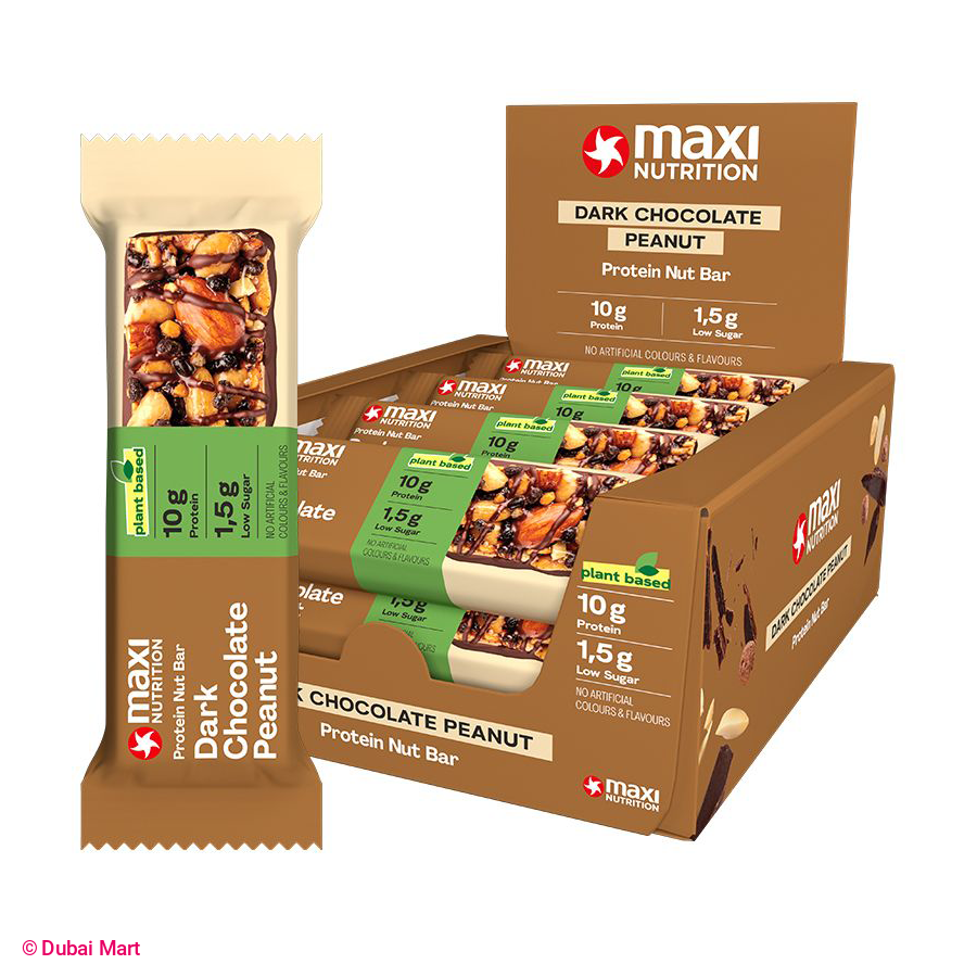 Maxi Nutrition Protein Nut Bar Dark Chocolate Peanut 46G - Box of 12 pcs