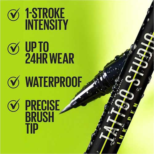 - Maybelline Tattoo Studio Ink Pen Liquid Eyeliner is waterproof and smudgeproof