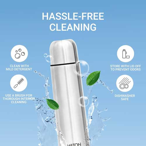 - The Milton Thermosteel filp lid bottle is made of high-quality SS 304 stainless steel, durable and rust resistant which is easy to clean. When cleaning, use a brush on the top and inside with a mild detergent. It is easy to carry so you can easily take it anywhere.