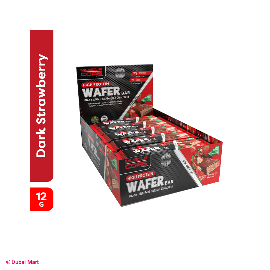 Muscle Core High Protein Wafer Bar Strawbery 40g -Box Of 12 Pieces