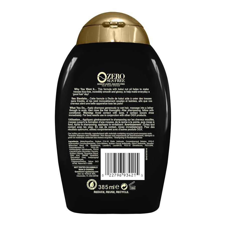 - ANTI-FRIZZ SHAMPOO: Rainy days and humidity are no match for this exotic formula blended with an ancient Hawaiian secret. A kukui nut oil infused blend helps create a shimmery glossy look and keeps the frizz out so you can shine on.