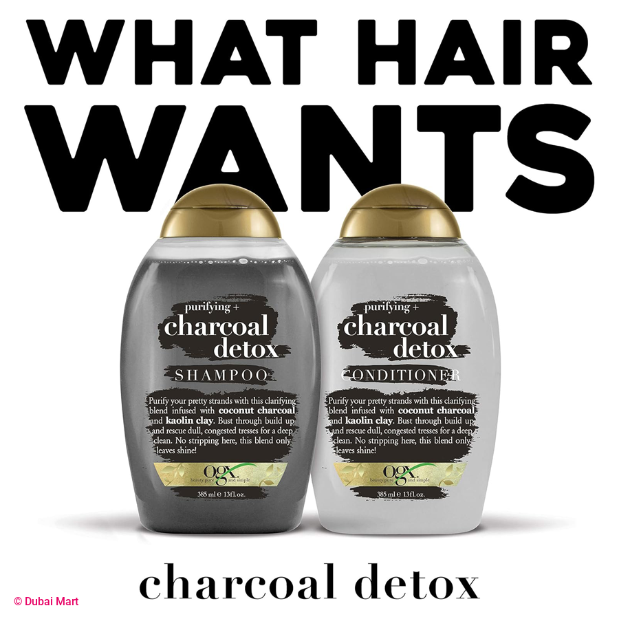 - OGX Purifying + Charcoal Detox Conditioner helps bust through buildup, letting clean strands shine through for the ultimate hair detox! Pair this conditioner with the Detox Shampoo to get the full benefit of these powerful ingredients.