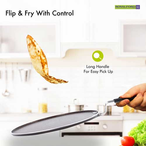 - একাধিক কুকটপের জন্য উপযুক্ত রয়্যালফোর্ড এর অ্যালুমিনিয়াম তাওয়া। গ্যাস, সিরামিক, হ্যালোজেন, হটপ্লেট এবং মডুলার কুকটপের মতো একাধিক ধরনের কুকটপের জন্য উপযুক্ত। এটি সব ধরনের ময়দা ভিত্তিক খাবার রান্না করার জন্য দুর্দান্ত। এটি টেকসই অ্যালুমিনিয়াম এবং ননস্টিক মার্বেলের আবরণের উপাদান দিয়ে তৈরি, তাই সহজেই রান্না করা যায়।