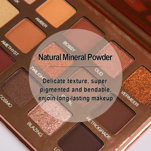 - An eyeshadow palette of 18 warm colors gives you a long-lasting and crease-free makeup look.