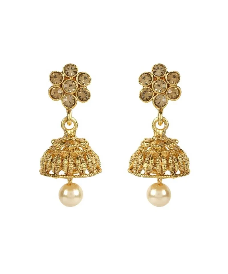 TRADITIONAL GOLD PLATED DESIGNER TASSELLED BRIDAL NECKLACE WITH JHUMKAS