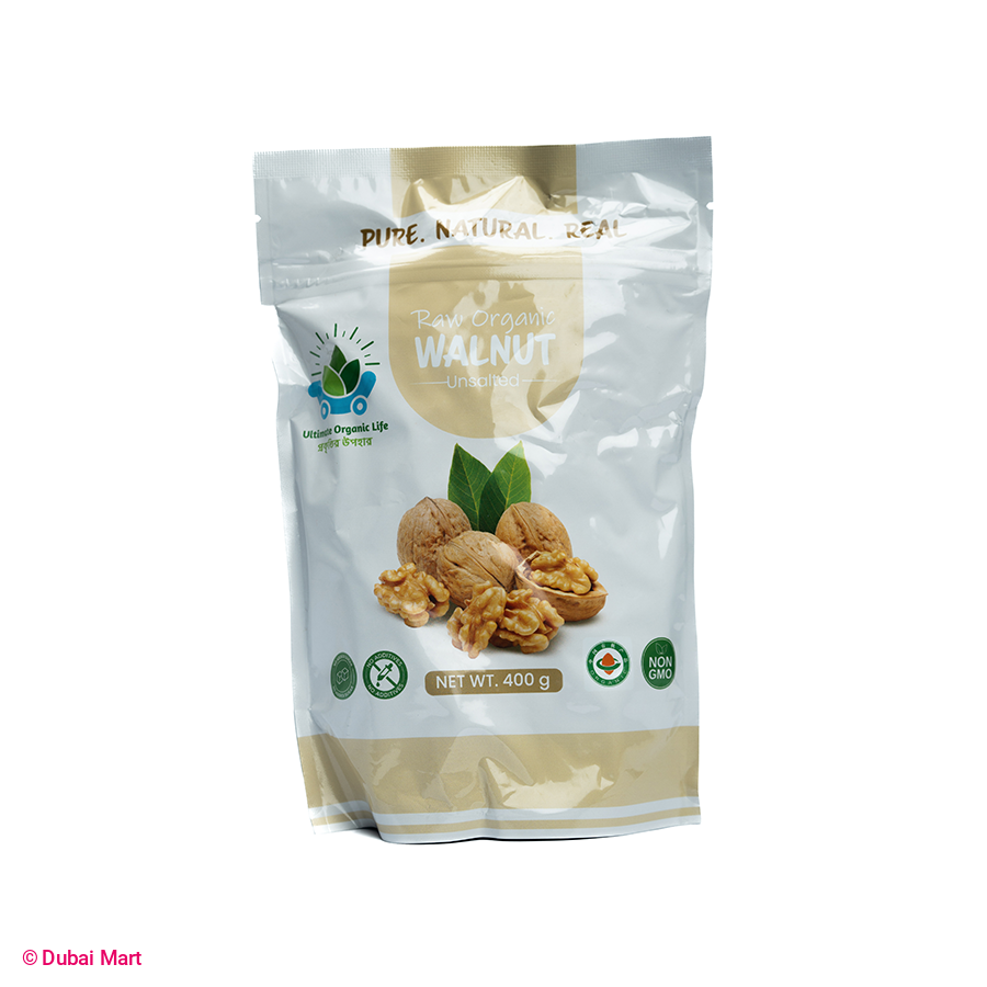 আল্টিমেট অর্গানিক লাইফ অর্গানিক ওয়ালনাট হলো একটি সম্পূর্ণ প্রাকৃতিক উপায়ে চাষ করা স্বাস্থ্যকর সুপারফুড, যা পুষ্টিগুণে ভরপুর। এটি প্রয়োজনীয় ওমেগা-৩ ফ্যাটি অ্যাসিড, অ্যান্টিঅক্সিডেন্ট, ভিটামিন এবং মিনারেল সমৃদ্ধ। ওয়ালনাট তার ক্রাঞ্চি টেক্সচার এবং প্রাকৃতিক স্বাদের জন্য বিখ্যাত, যা সহজেই বিভিন্ন খাবারের সাথে যুক্ত করা যায় এবং দৈনন্দিন পুষ্টি প্রয়োজন মেটাতে সহায়ক।