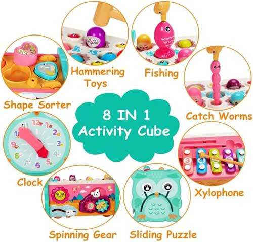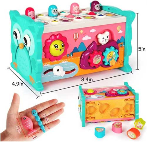 - This toy is completely safe for children. With 4 activities in one toy, it helps children develop hand-eye coordination, fine motor skills, muscle control and color recognition.