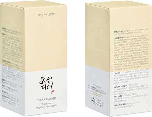 - Beauty of Joseon Glow Serum contains propolis which moisturizes the skin.