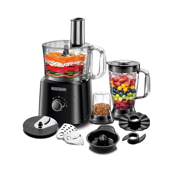 ***Black+Decker Food Processor, 750W, 34 Functions, 2L Bowl, 1.8L Blender, Grinder, Chopper, Dough Maker, Citrus Juicer, Slicing and Shredding Blades, Whisk, Black