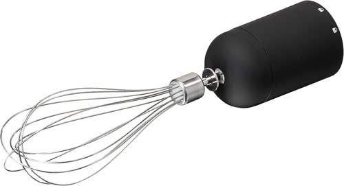 - This 7-piece deluxe set includes a stainless steel blending wand, whisk, chopping bowl and mixing cloth with lid.