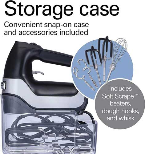 ****Hamilton Beach Professional 7-Speed Electric Hand Mixer with Digital Display, Quiet DC Motor, Beater, Whisk, Dough Hook, Snap-On Storage Case, 200 Watts, Black, 62655-SAU, 5-Year Limited Warranty