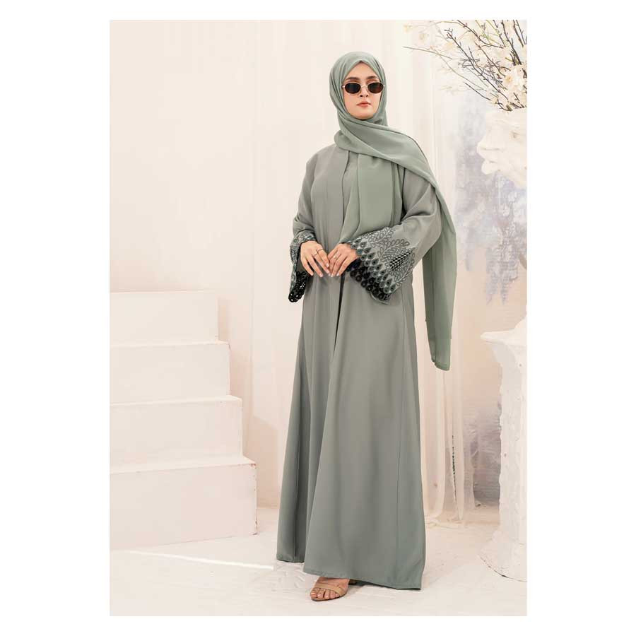 - This gorgeous burqa has a beautiful cutwork design on the sleeves.
