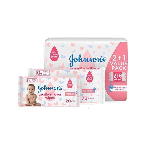 ***Johnson's Baby Wipes -, Gentle All Over, (216 Total Count)