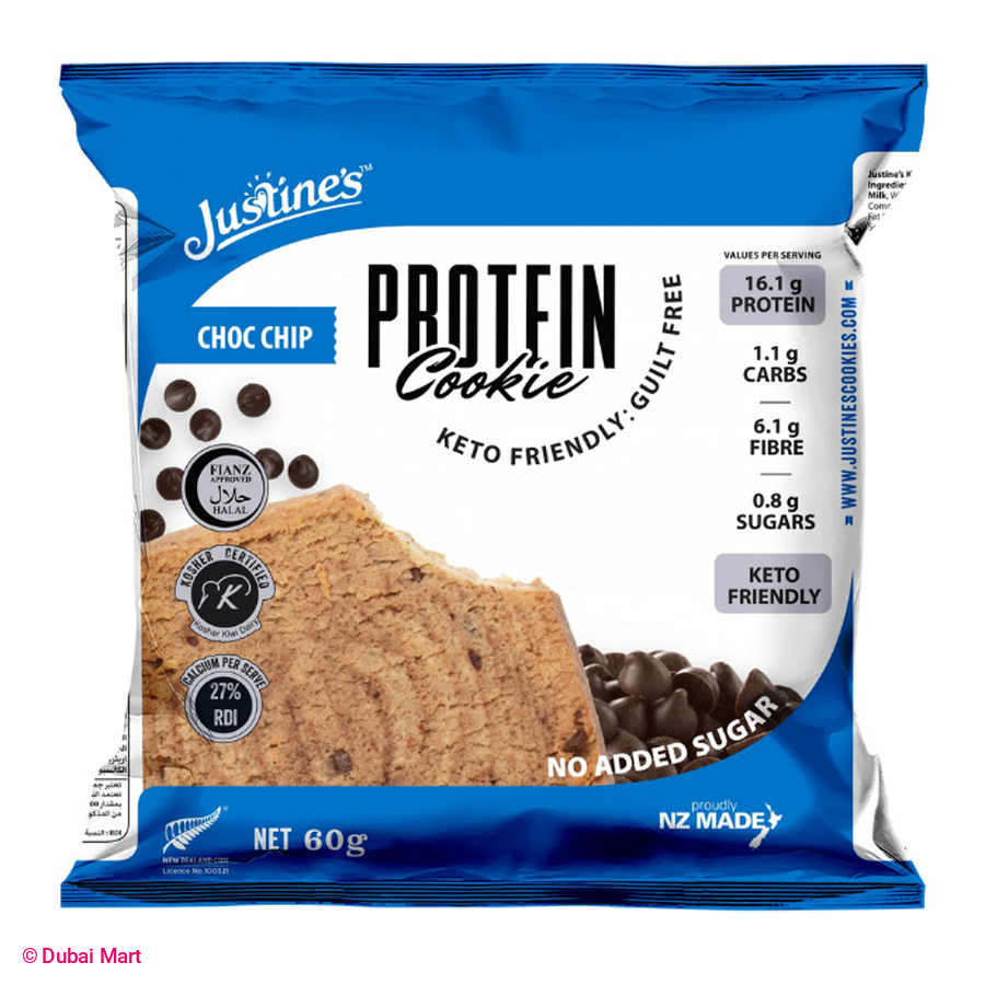 - Freshly baked, keto friendly and delivering a guilt free, yet smart snacking solution. A healthier version of your traditional choc chip cookie with soft notes of vanilla and chocolate chunks that melt in your mouth. This delicious soft baked cookie is extremely low in carbs, just 1.1 g per serve and is high in protein, delivering 16.1 g of protein per 60 g cookie. That's 32%DI of your protein needs. It is made with no wheat and gluten, just pure almond meal as its base for added nutrition. It is high in fibre too, delivering 20% DI of your fibre needs.