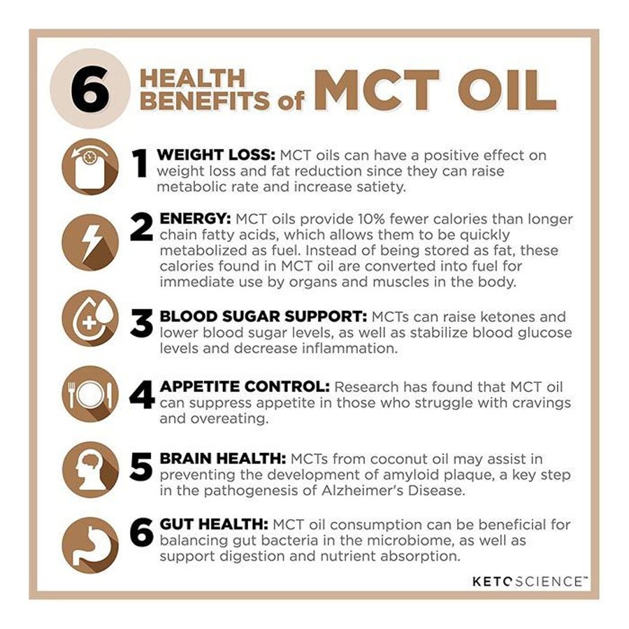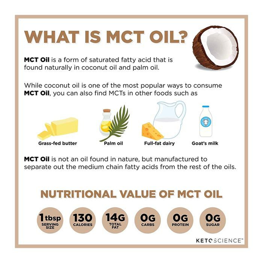 - Pure MCT Oil 100% Sourced From Coconuts