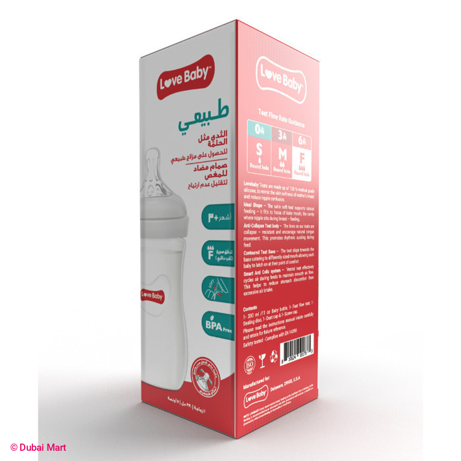 - Lovebaby Natural feeding bottles are carefully crafted to mimic the natural flow and rhythm of breastfeeding, ensuring a seamless transition between breast and bottle feeding. The soft, breast-like teat promotes a comfortable latch and supports your baby's natural sucking reflex.