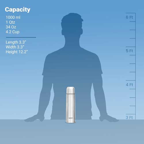 ***Milton Thermosteel Flip Lid 1000, Double Walled Vacuum Insulated Thermos 1000 ml 34 oz 1 Ltr 24 Hours Hot and Cold Water Bottle