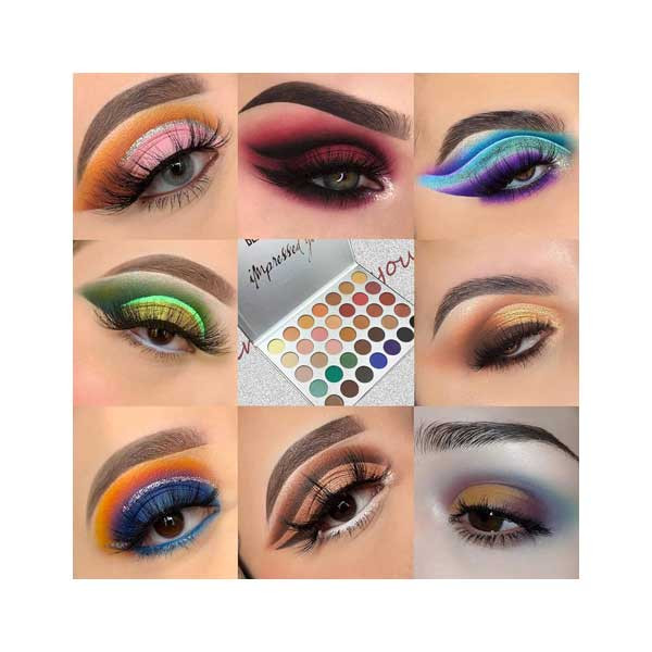 - Eyeshadow palette of 35 shades from light to dark and natural to bright for the full face. Suitable for any skin type. You can use light or dark colors as your base and light shimmers as highlights.