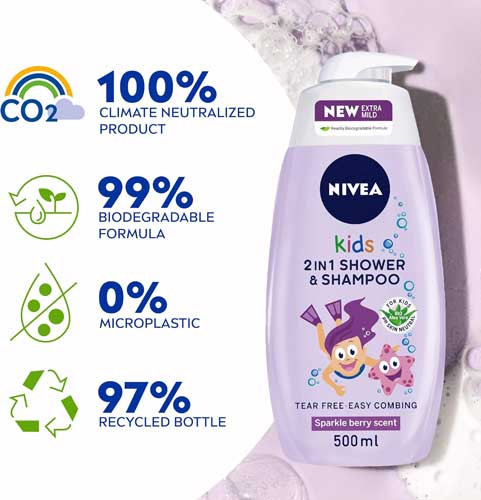 ***Nivea Kids Shower & Shampoo 2in1 Sparkle Berry 500m