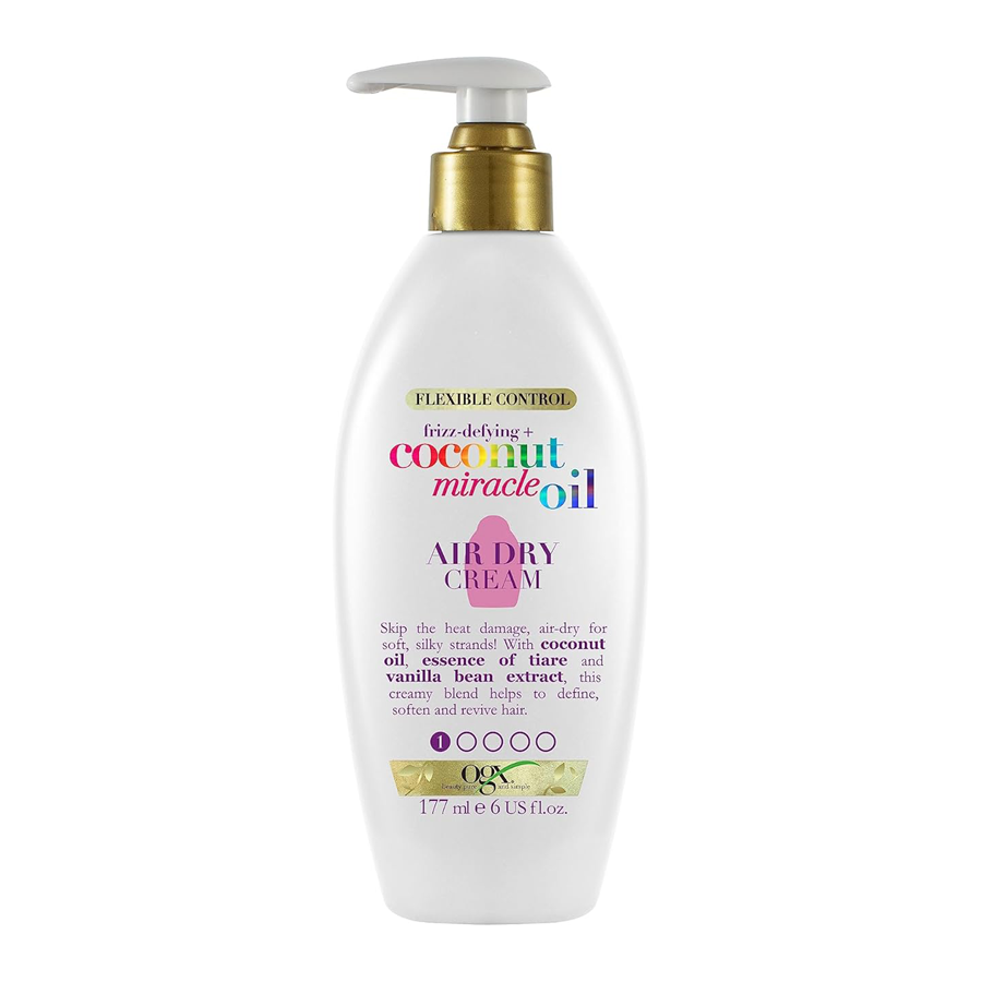 - OGX frizz defying + coconut miracle oil air dry cream that will help you get smooth and shiny hair without using the hairdryer