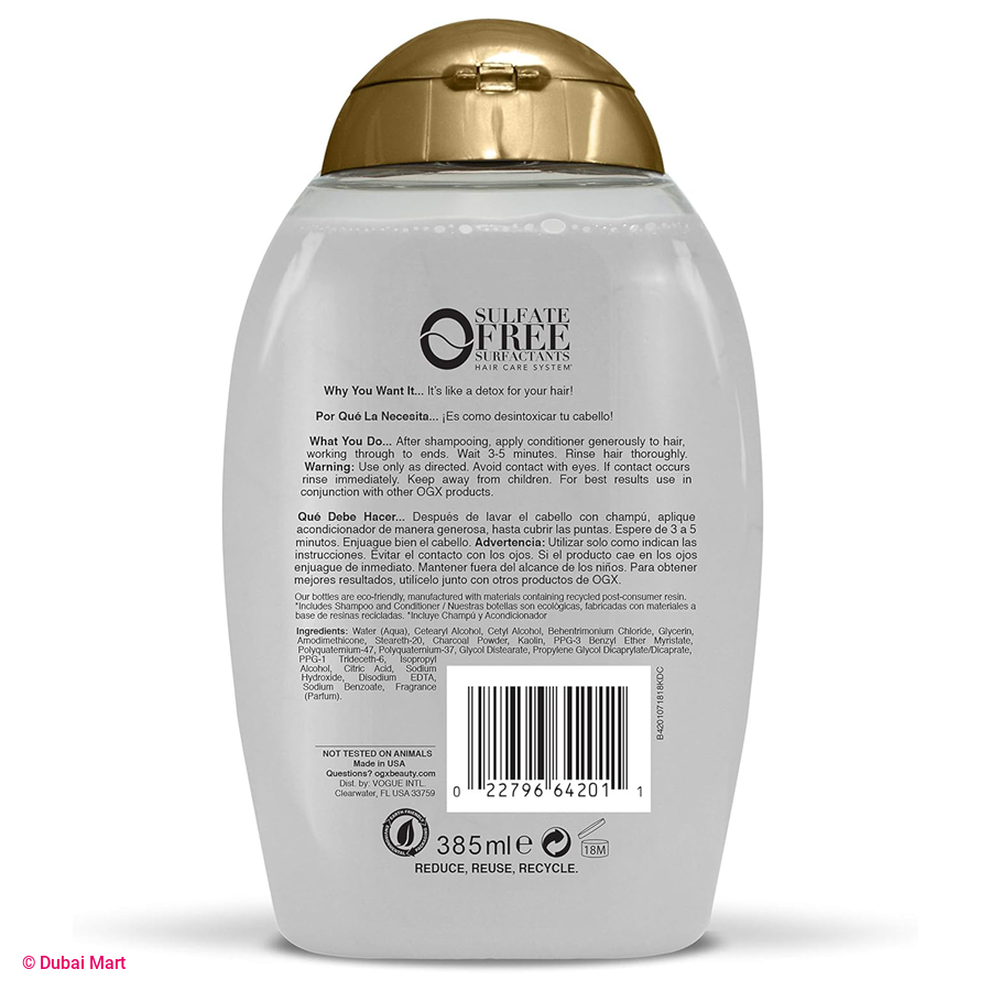 - Give your hair a detox with OGX Purifying + Charcoal Detox Conditioner. With activated coconut charcoal and kaolin clay. Works for all hair types.