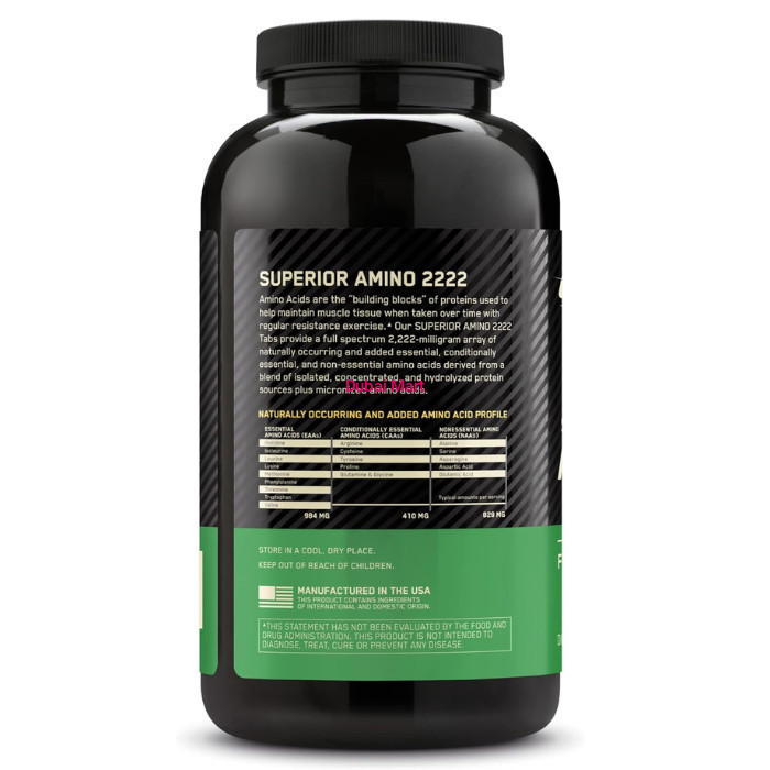 - Amino Acids are the building blocks of protein including proteins used to grow, repair, and maintain muscle tissues. Our Superior Amino 2222 Tabs provide a full spectrum 2,222 mg array of essential, conditionally essential, and non-essential amino acids derived from a blend of isolated, concentrated, and hydrolyzed protein sources and fortified with additional Micronized Amino Acids. Bottom line: It is one powerful pill.