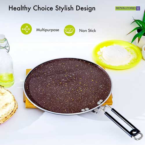 - একাধিক কুকটপের জন্য উপযুক্ত রয়্যালফোর্ড এর অ্যালুমিনিয়াম তাওয়া। গ্যাস, সিরামিক, হ্যালোজেন, হটপ্লেট এবং মডুলার কুকটপের মতো একাধিক ধরনের কুকটপের জন্য উপযুক্ত। এটি সব ধরনের ময়দা ভিত্তিক খাবার রান্না করার জন্য দুর্দান্ত। এটি টেকসই অ্যালুমিনিয়াম এবং ননস্টিক মার্বেলের আবরণের উপাদান দিয়ে তৈরি, তাই সহজেই রান্না করা যায়।