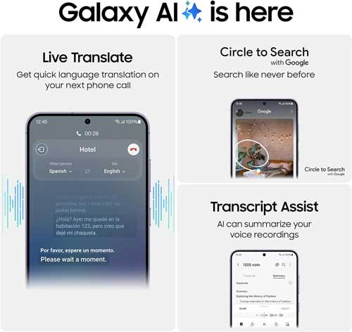 - Experience a whole new level of searching, get real-time call translations, format notes into summaries, and easily edit photos—all with AI.