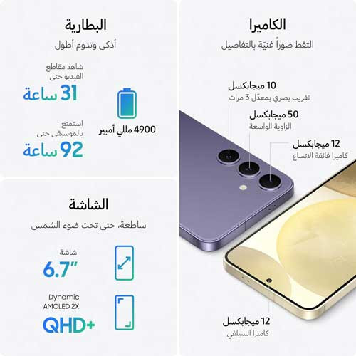 - Power on and on. Galaxy S24 and S24+ feature an intelligent battery for extended watch time and you time.
