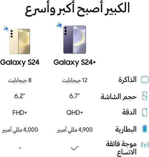 - There’s even more to love about Galaxy S24 and S24+. Need more? Galaxy S24+ features a larger QHD screen with the highest resolution on a Galaxy device.