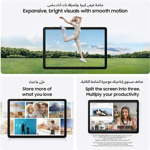 - The Galaxy Tab A9 and A9+ combine sleek design with a smooth metal body, available in Graphite, Silver, and Navy for effortless style.