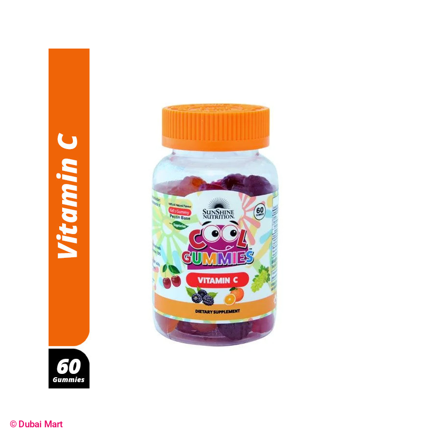 • Sunshine Nutrition€™s Cool Gummies €“ Vitamin C is an antioxidant-fortified with Cherry, Orange & Grape flavors for the maintenance of good health.