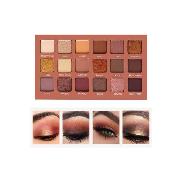 - ১৮টি উষ্ণ রঙের আইশ্যাডো প্যালেটটি আপনাকে একটি দীর্ঘস্থায়ী এবং ক্রুটিহীন মেকআপ লুক দিয়ে থাকে।