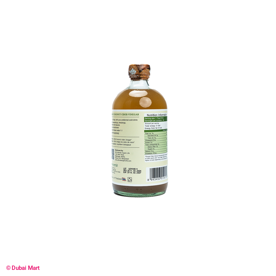 আল্টিমেট অর্গানিক লাইফ অর্গানিক কোকোনাট সিডার ভিনেগার উইথ মাদার হল একটি প্রাকৃতিক ও উচ্চ মানের ভিনেগার, যা খাঁটি নারকেল সিডার থেকে প্রস্তুত করা হয়েছে। এটি প্রাকৃতিক "মাদার" উপাদানযুক্ত, যা ভিনেগারের পুষ্টিগুণ এবং স্বাস্থ্য উপকারিতা বৃদ্ধিতে সহায়ক। আমাদের ভিনেগারটি কোনো প্রকার কেমিক্যাল বা প্রিজারভেটিভ ছাড়া তৈরি।