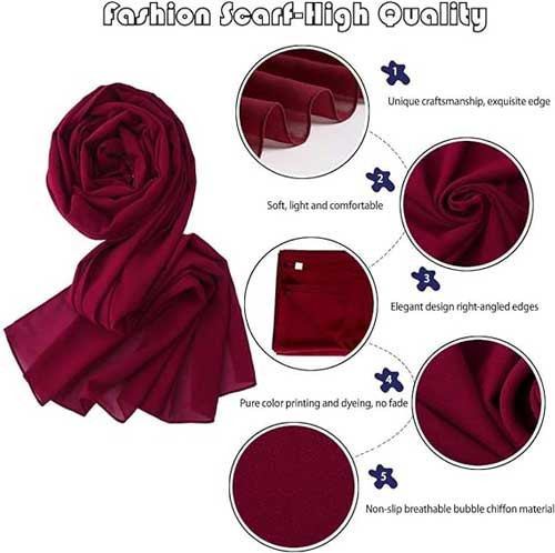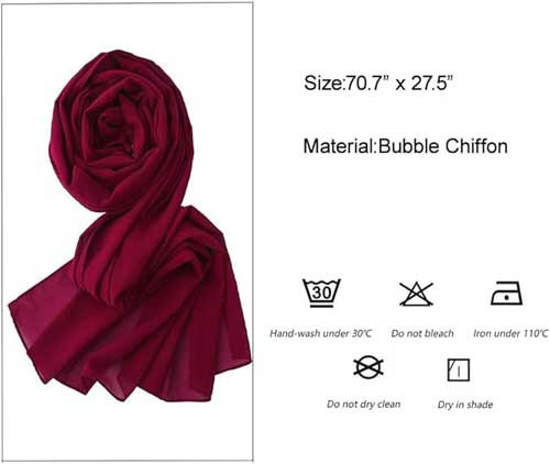 - The chiffon scarf is made of premium 100% polyester fiber, which is extremely lightweight, soft and smooth.